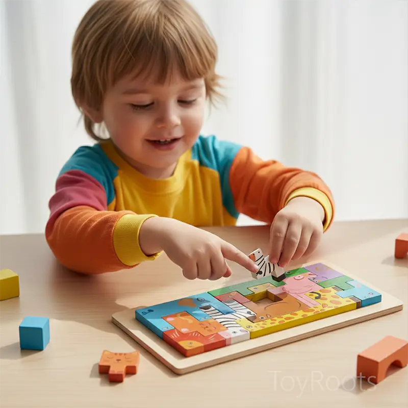 Made from high-quality, durable wood, each piece is smooth, safe, and perfectly sized for small hands. Children learn to recognize shapes, colors, and animals while improving their fine motor skills, hand-eye coordination, and problem-solving abilities.