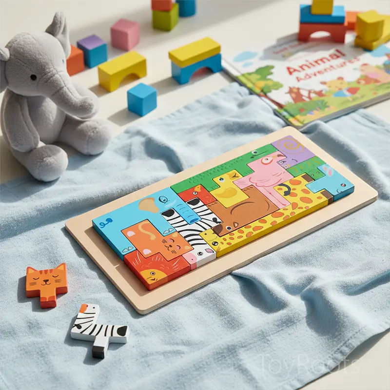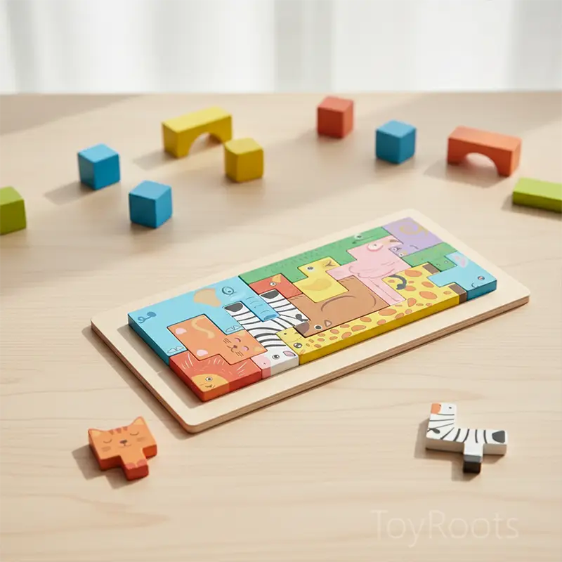 Wild Logic: Abstract Jungle Animal Wooden Pattern Puzzle